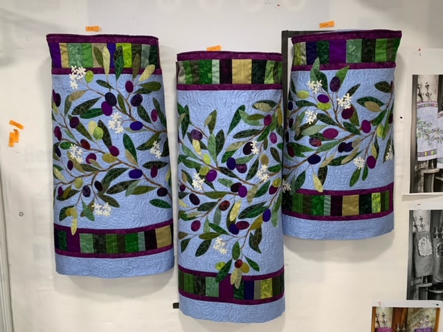 I was raised in a conservative Lutheran family, and was introduced to Judaism when I met my future husband in graduate school, so my first quilts were traditional patterns. I began to explore Judaic fiber art when I made my son’s tallit for his bar mitzvah. I soon realized that many Judaic ritual items can be explored in fabric and stitch. Studying and then converting to Judaism, establishing a Jewish home and family, and participating in synagogue life allowed me to find many ways to meld the historic tradition of quilting with the rituals celebrated and honored in Jewish life.