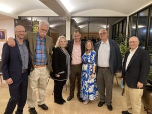 2024: Matthew Clash-Drexler, flanked by Cantor Lindsay Kanter, David Fishback, former General Counsel of the Service Employees International Union (and now federal judge) Nicole Berner, CSAC member Candace J Groudine, retired UAW economist Steve Beckman, and Rachel Rivko